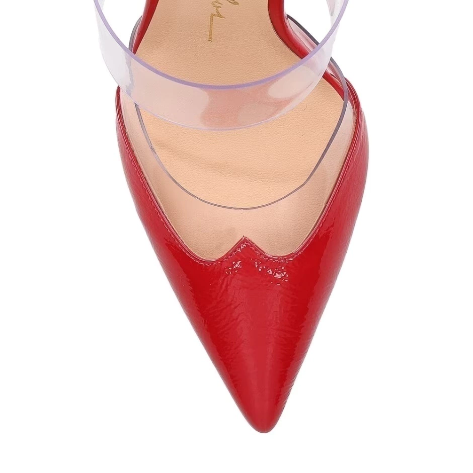 O novo scarpin mule Luiza Barcelos é a peça perfeita para produções statement. Esse sapato incorpora a atitude de uma garota moderna com uma essência sofisticada, perfeitamente alinhada com a nova alfaiataria que combina sensualidade e jovialidade. O modelo é produzido em couro com acabamento envernizado no tom vermelho, combinado com vinil transparente e possui salto alto.